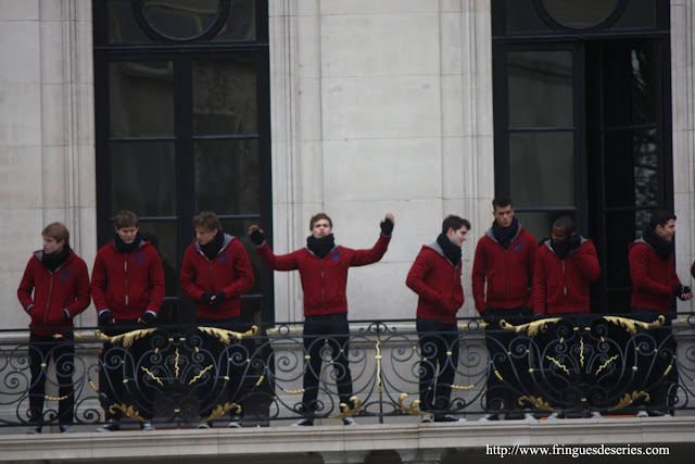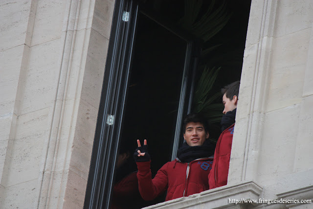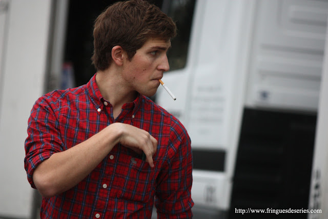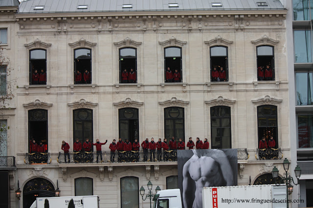 Troisième jour d’exposition des boys d’Abercrombie & Fitch aux fenêtres du magasin bruxellois et ils sont de plus en plus couverts…Finiront-ils en père Noël ? En se promenant dans le quartier, on pouvait tomber sur Corbin, jeune modèle malinois qui prenait sa pause déjeuner avant de réintégrer son balcon. Tout comme Kevin, il restera à Bruxelles pour travailler dans la boutique.