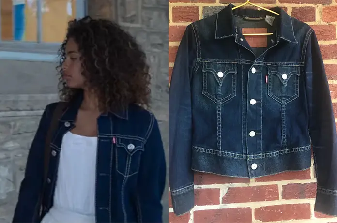 Célène (Paola Locatelli) porte une petite veste en denim dans Les Liaisons dangereuses de Rachel Suissa sur Netflix. Une petite veste vintage, de style western, très similaire à celle que l’on trouve sur Etsy