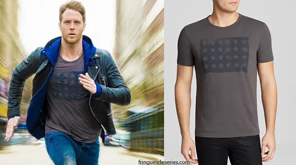 Dans le pilote de Limitless, l’action débute par Brandon Finch (Jake McDorman) fuyant les agents du FBI. Il porte un t-shirt éto