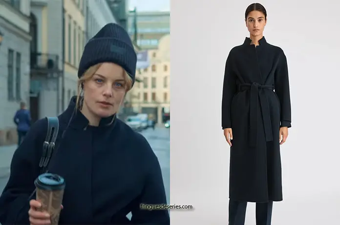 Sofie (Ida Engvoll) porte un très élégant manteau bleu marine dans Love & Anarchy (Kärlek & Anarki) dont elle relève le col. Il s’agit du modèle Alexa de Fliippa K.