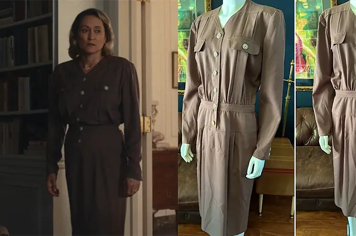 Voici la robe que porte Nancy (Angela Reed) lorsqu’elle annonce, dans Love Story 1×03 que Jackie souhaite les derniers sacrements.