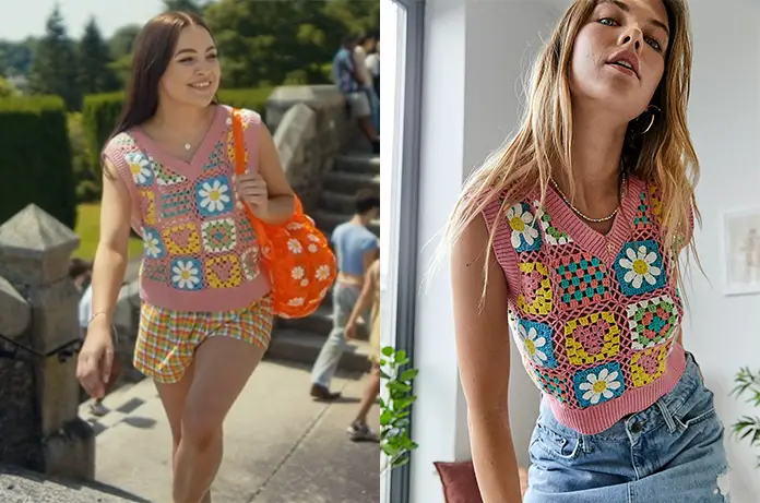 LOVESTRUCK HIGH : Charlie’s pink crochet vest sweater in S1E01
