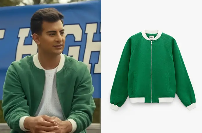 FashionFringues de sériesLovestruck High LOVESTRUCK HIGH : Junaid’s green bomber in S1E02 Par FDS - 25 mai 2022 0 1018 FacebookTwitterPinterest Junaid (Junaid Ahmed) porte un bomber vert, avec l’inscription « Big Sun California » dans le dos, dans Le Lycée de l’amour (Lovestruck 1×02) sur Prime Video.On le trouvait chez Zara J’aime ça :J’aime chargement…