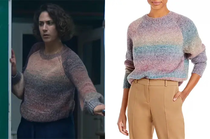 Karen (Ann Eleonora Jørgensen) porte un pull à dominante mauve dans Lutins (Nisser) 1×02. On le trouve ici ou ici