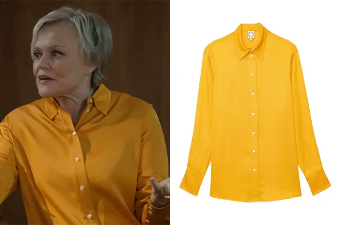 Dans le 2e épisode de la saison 2 de Master Crimes, Louise (Muriel Robin) porte cette blouse jaune en satin.
