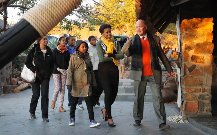 Il s’agit d’une veste à col, orné de perles, de la collection Asos Africa, que l’épouse du président américain portait à un dîner privé au Botswana.