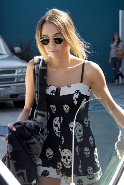 La tête de mort est tendance, on le sait…Ainsi, Miley Cyrus a été vue le lundi 16 sortir de son cours de Pilates dans une combi avec têtes de mort. On verra bientôt l’actrice dans le remake du film LOL de Lisa Azuelos. La comédie a beaucoup de mal à sortir aux États-Unis – on a parlé d’une sortie directement en dvd- mais sera finalement projeté sur quelques écrans le 4 mai. Le film sortira le 20 juin en Belgique, et en septembre sur les écrans français.