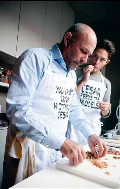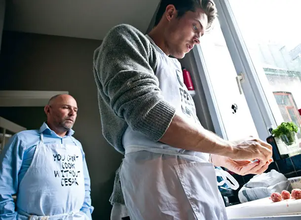 Nous vous avions déjà parlé du modèle belge Cesar Casier et de son gout pour la cuisine, qu’il distille notamment dans son blog. Pour la fête des pères, nous avons repéré un numéro récent du Weekend, le supplément du Vif L’express (le n°20, du 16 mai). Dans l’article signé Pieter van Doveren, on voit comment Cesar et Bruno, son père, partagent la même passion pour la cuisine. Réunis devant les fourneaux, ils concoctent ensemble tout un menu, dont leur vol-au-vent dont vous trouverez ci-dessous la recette.