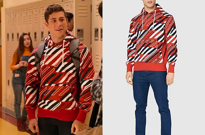 Fringues de sériesNever have I ever NEVER HAVE I EVER : Ben’s graphic hoodie in S2E02 Par FDS - 18 juillet 2021 0 1851 FacebookTwitterPinterest Quand il s’invite à la fête de Devi, Ben(Jaren Lewison), dans Mes premières fois 2×02, porte ce sweat à capuche rouge, avec motifs noirs et blanc. On le trouve ici Il existe aussi en d’autres coloris, ici J’aime ça :J’aime chargement…