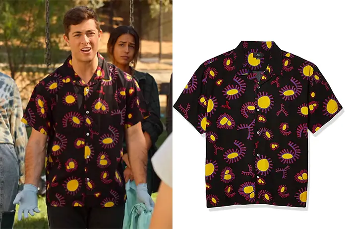 Ben Cross (Jaren Lewison) porte cette chemise à manches courtes très colorée dans le 1er épisode de la saison 2 de Mes premières fois (Never I have ever) sur Netflix. On la trouve ici