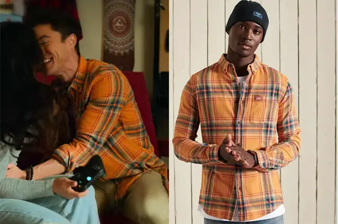 NEVER HAVE I EVER : Paxton’s orange check shirt in S3E02