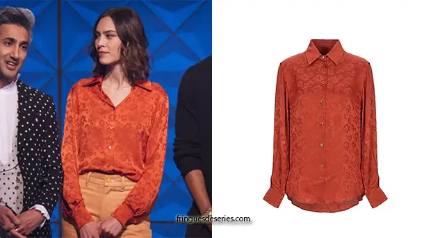 Alexa Chung porte une chemise de sa collection dans Next in Fashion 1×03. On le trouve ici.