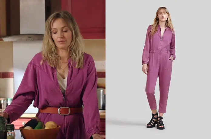 Sa sœur Audrey (Gabrielle Atger) porte une combi violette, dispo ici