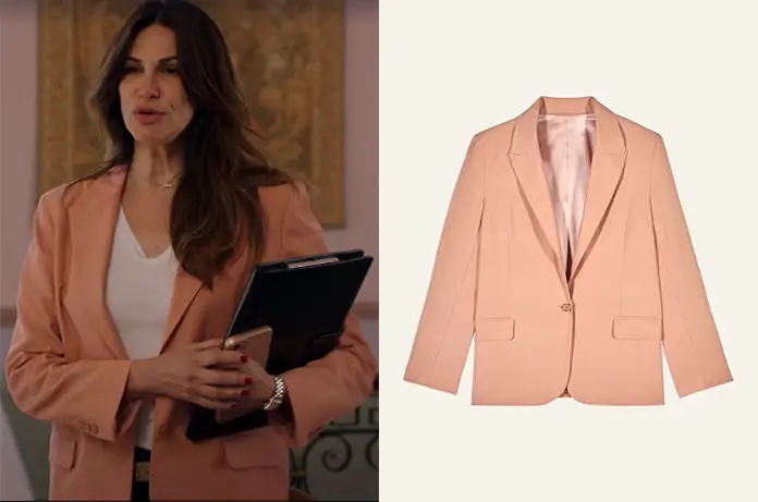 Louise Bartoli (Helena Noguerra) continue à dévoiler sa collection de blazers. Celui-ci est un modèle Ba&sh.