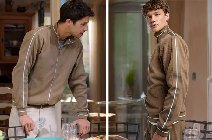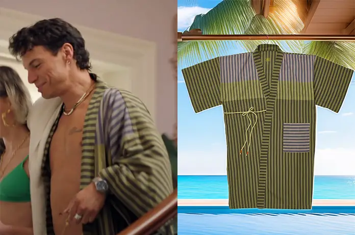 Autre client de l’hôtel, Robbie Castel (Kevin Dias) avec un peignoir Ikea, le modèle MÄVINN.