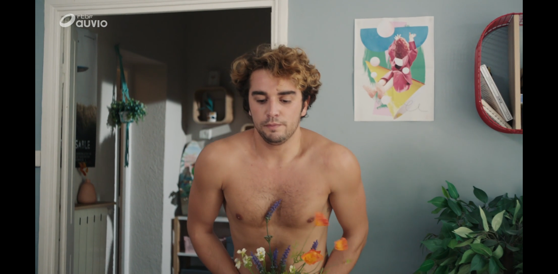 Mais au lieu d’une thérapie douce, on assiste à un crash vestimentaire en règle. Les trois compères se retrouvent à poil, littéralement — et c’est pile à ce moment que Fleur (Malou Mullier) fait son entrée. Résultat : trois garçons paniqués qui courent dans tous les sens, une Fleur médusée, et un record de rougeurs faciales.