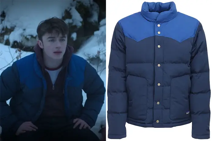 Sam (Thomas Chomel) porte cette doudoune à deux teintes de bleu dans Parallèles 1×02 (Disney +) Il s’agit du modèle Bivy de Patagonia.