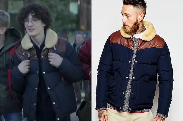 Bilal (Timoté Rigault) porte une veste bleue avec empiècements cuir et col fourré dans la nouvelle série Disney Parallèles. Ils ‘agit d’un ancien modèle de la marque Penfield.