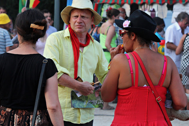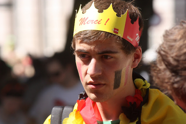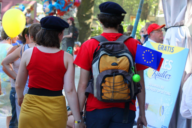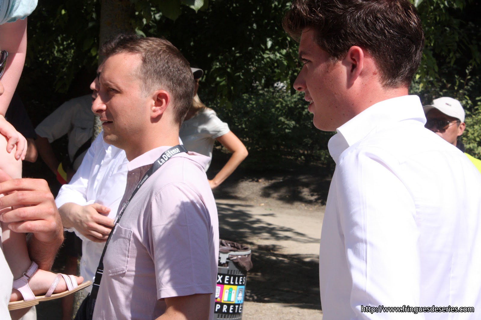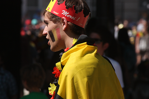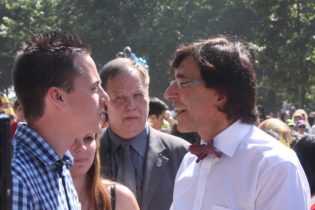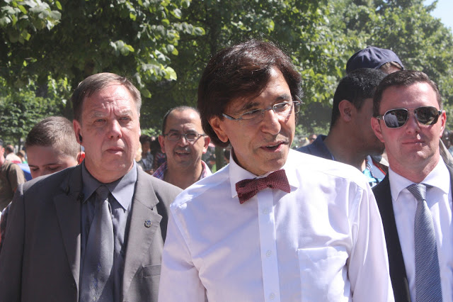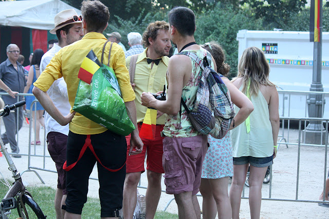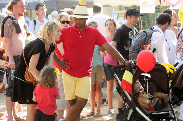 Ce 21 juillet, jour de fête nationale belge ( et d’abdication du Roi Albert II et intronisation du Roi Philippe), beaucoup de monde voulait rappeler les couleurs nationales à travers leurs tenues, leurs accessoires… Cette balade dans le parc nous a permis de rencontrer Elio di Rupo, le premier Ministre, tout disposé à poser avec qui le voulait, à échanger 3 mots, suivi de sa garde rapprochée… On change de dress code, on passe du noir au blanc.