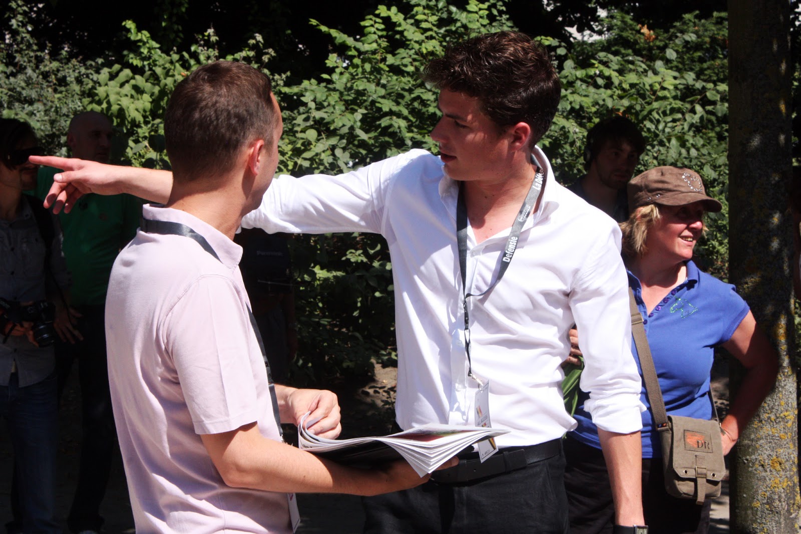 L’entourage du ministre en npir et blanc. On reconnait, ci-dessous, sur la gauche Guillaume De Walque, son porte-parole.