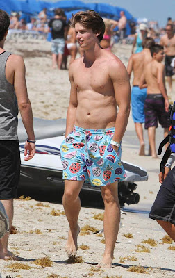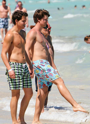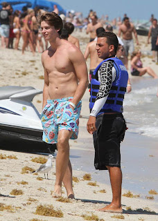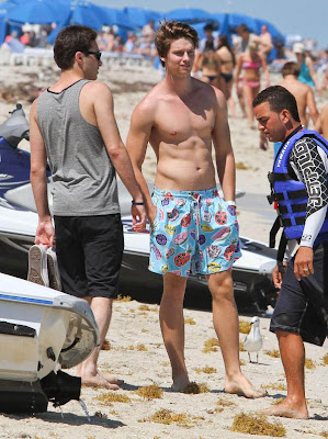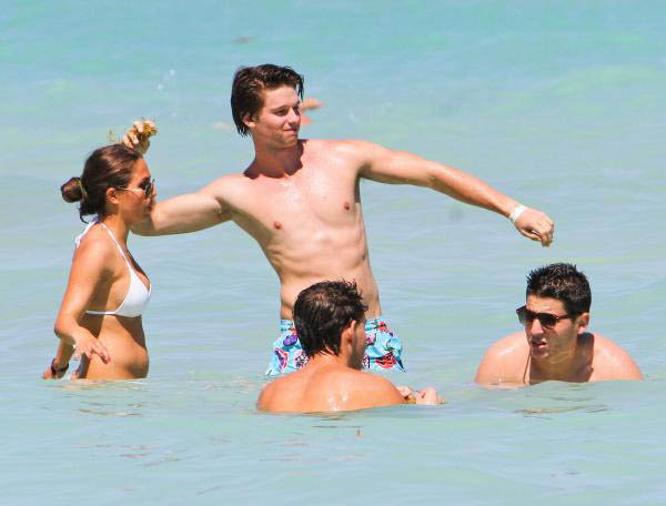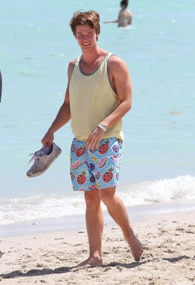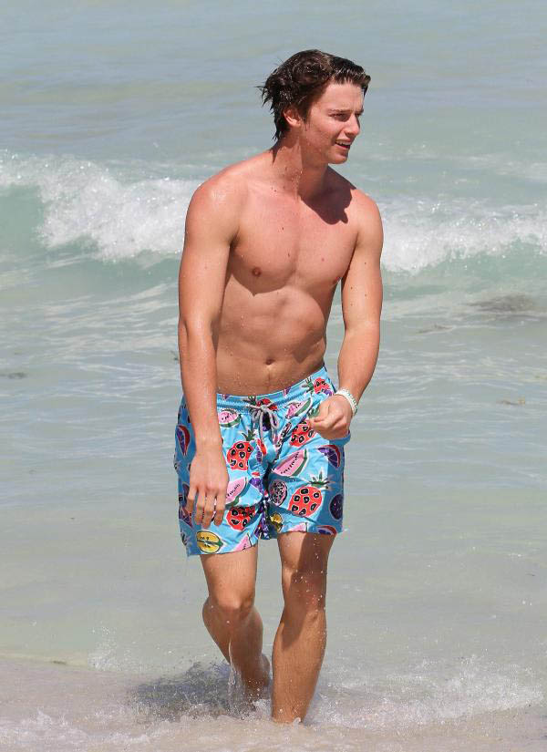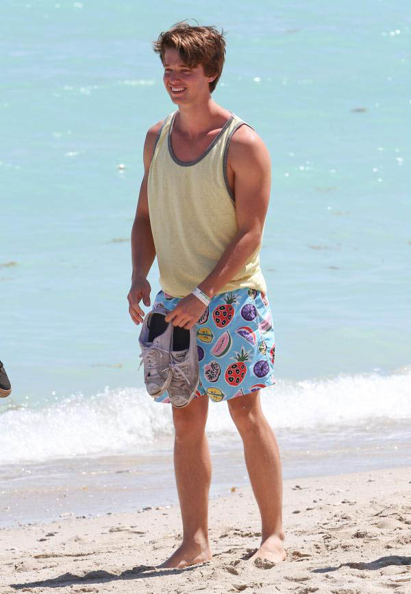 Patrick Schwarzenegger s’est éclaté ce week end sur les plages de Miami, avec des amis. On est donc rassuré sur l’état du fils d’Arnold. Le jeune mannequin de 18 ans avait eu un accident de ski il y a une quinzaine de jours. Mais tout va bien aujourd’hui, et nous pouvons que nous en réjouir… patrick arborait pour cette sortie un très fruité short de bain de la marque Vilebrequin. Cette marque de maillots de bain, crée à Saint-Tropez n’est certes pas la meilleure marché, mais égaye les plages de la Riviera ou de Miami de couleurs vives.