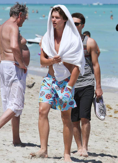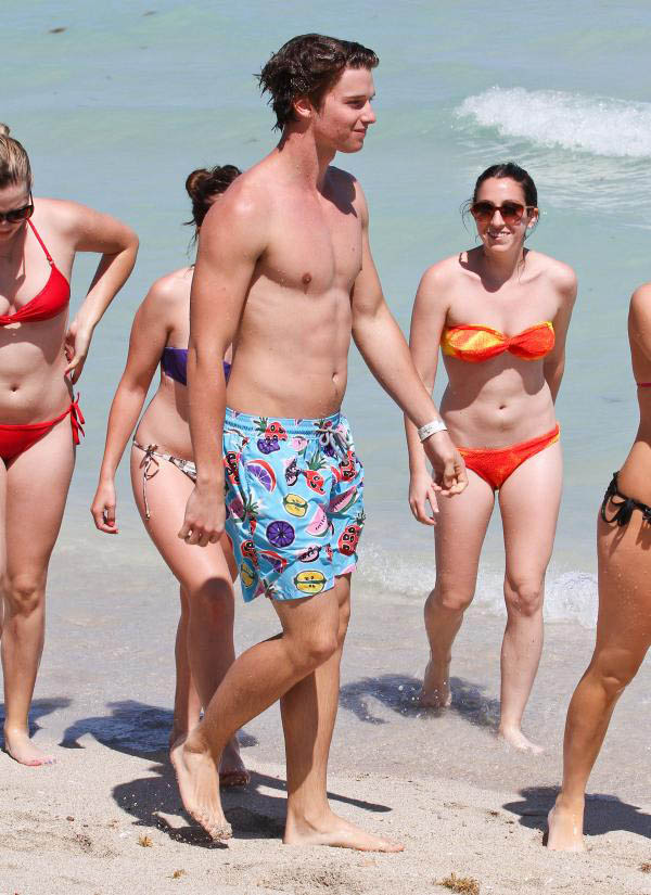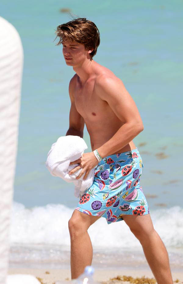 Patrick Schwarzenegger s’est éclaté ce week end sur les plages de Miami, avec des amis. On est donc rassuré sur l’état du fils d’Arnold. Le jeune mannequin de 18 ans avait eu un accident de ski il y a une quinzaine de jours. Mais tout va bien aujourd’hui, et nous pouvons que nous en réjouir… patrick arborait pour cette sortie un très fruité short de bain de la marque Vilebrequin. Cette marque de maillots de bain, crée à Saint-Tropez n’est certes pas la meilleure marché, mais égaye les plages de la Riviera ou de Miami de couleurs vives.