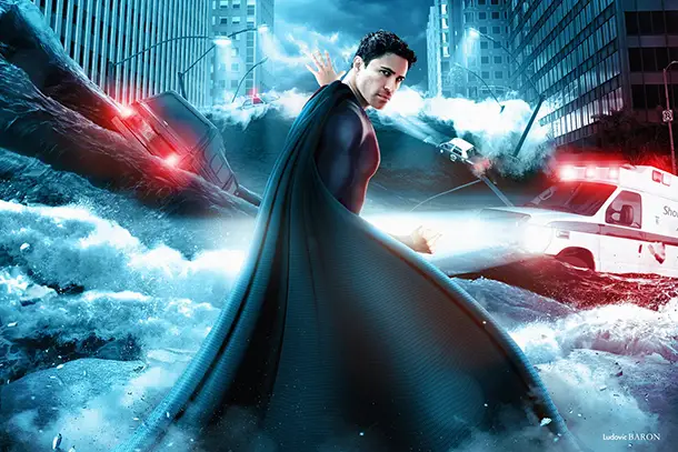 Cette fois, il a rencontré notre ami Ludovic Baron, dont on a déjà beaucoup parlé dans ce blog. Shooting dans une villa additionné à la délirante palette de Ludo, et voilà notre comédien d’origine cubaine transformé en Waterman, superhéros repoussant (ou faisant déferler, à vous de juger) un tsunami dans les rues de la ville.