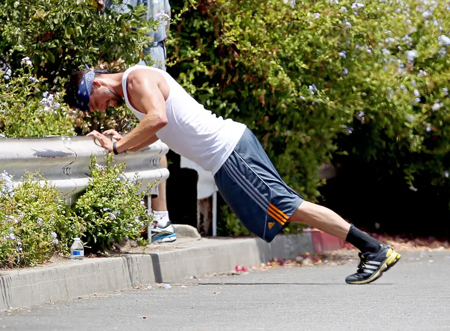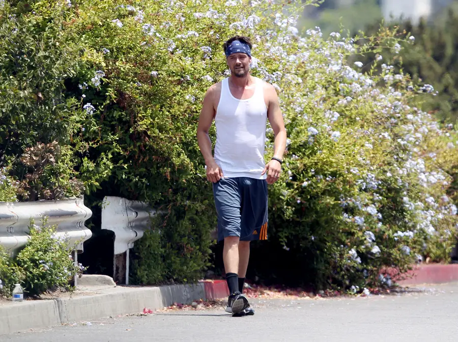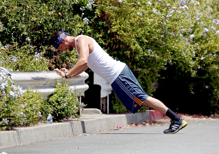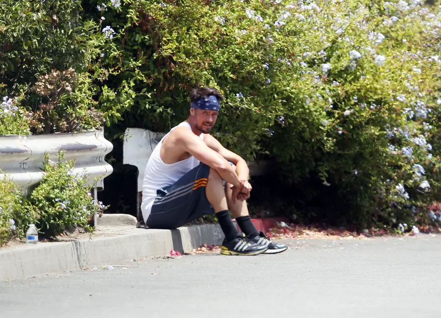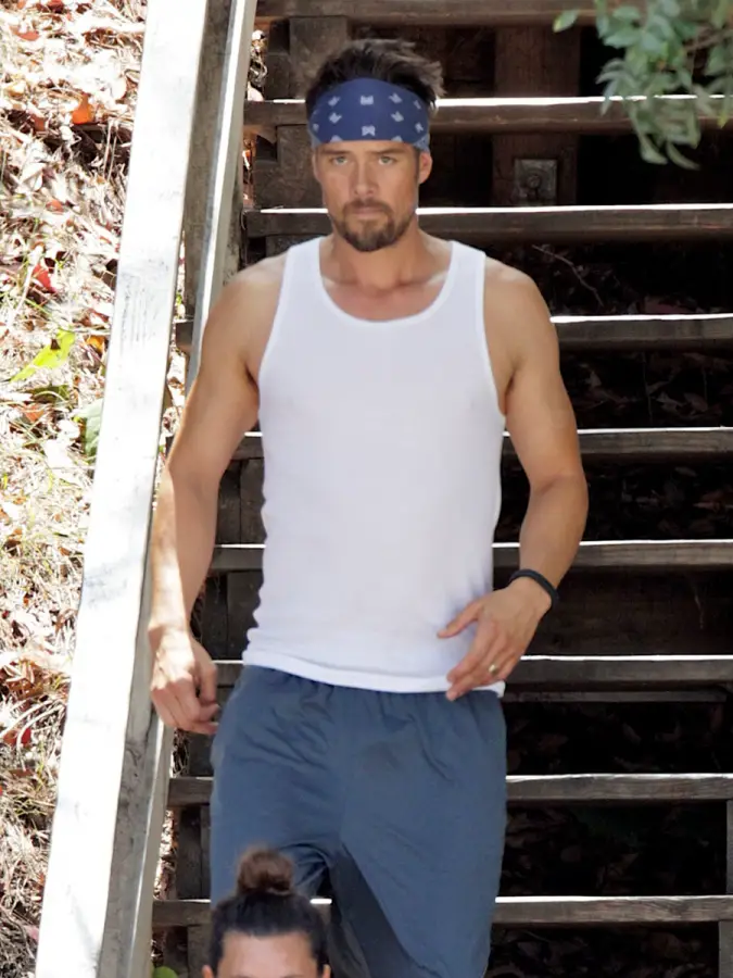 Il y a deux jours, le séduisant Josh Duhamel avait mis sa belle tenue Adidas pour faire quelques exercices dans un quartier de Los Angeles. Comme vous le voyez, il utilise escaliers ou autres matériels urbains pour entretenir sa forme.