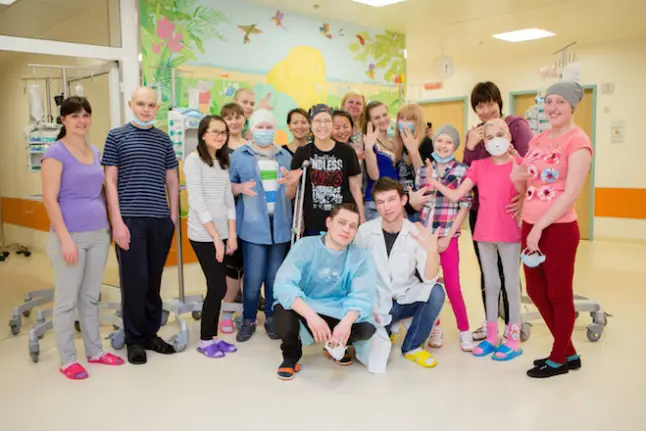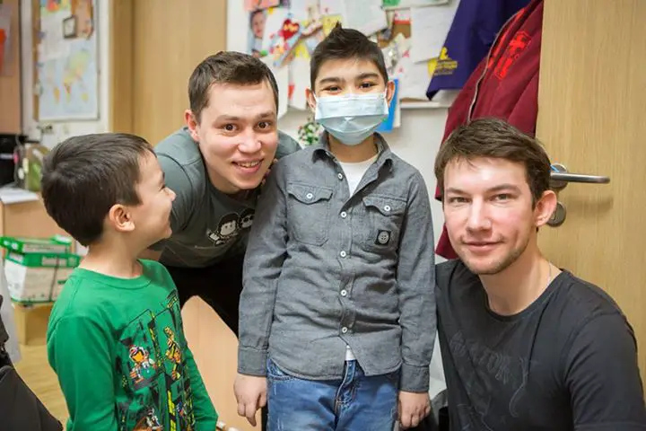 On a connu Kirill Emelyanov avec le film Eastern Boys et sa nomination au César du meilleur espoir masculin, mais il n’est pas encore une star en Occident. Mais en Russie, Kirill est très populaire grâce à la série Kadetstvo (Кадетство) où l’on suit des cadets à l’académie militaire Suvorov. Et la série a une grande famille de fans. Sur cette photo, on voit Kirill et un autre acteur de la série Artem Terekhov rendre visite à l’un d’entre eux, un jeune malade, dans un centre d’hématologie pédiatrique. Ils ont parlé des cadets, de secrets de tournage et le plus important, le gamin (qui copie même la coiffure de son héros) a pu chanter la chanson du générique
