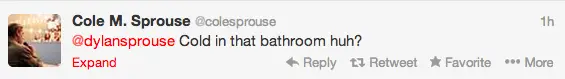 Cole, son frère jumeau a émis une remarque très drôle aussi (peut-être, craignait-il, étant un vrai jumeau, que l’on compare trop intensément leurs anatomies)
