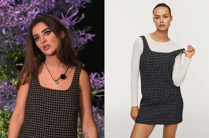 Fringues de sériesPerfect Match PERFECT MATCH : Ines’s tweed dress in S1E07 Par FDS - 23 février 2023 0 1088 FacebookTwitterPinterest Ines (Ines Tazi) porte cette petite robe chasuble en coton texturé façon tweed dans Perfect Match 1×07, sur Netflix. Un modèle Mango. J’aime ça :J’aime chargement…