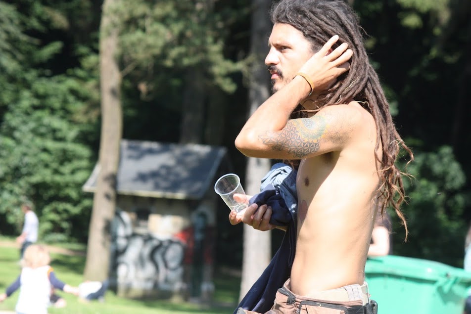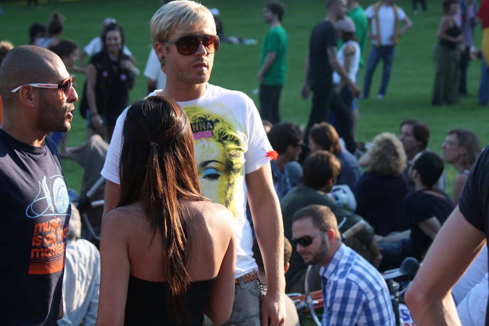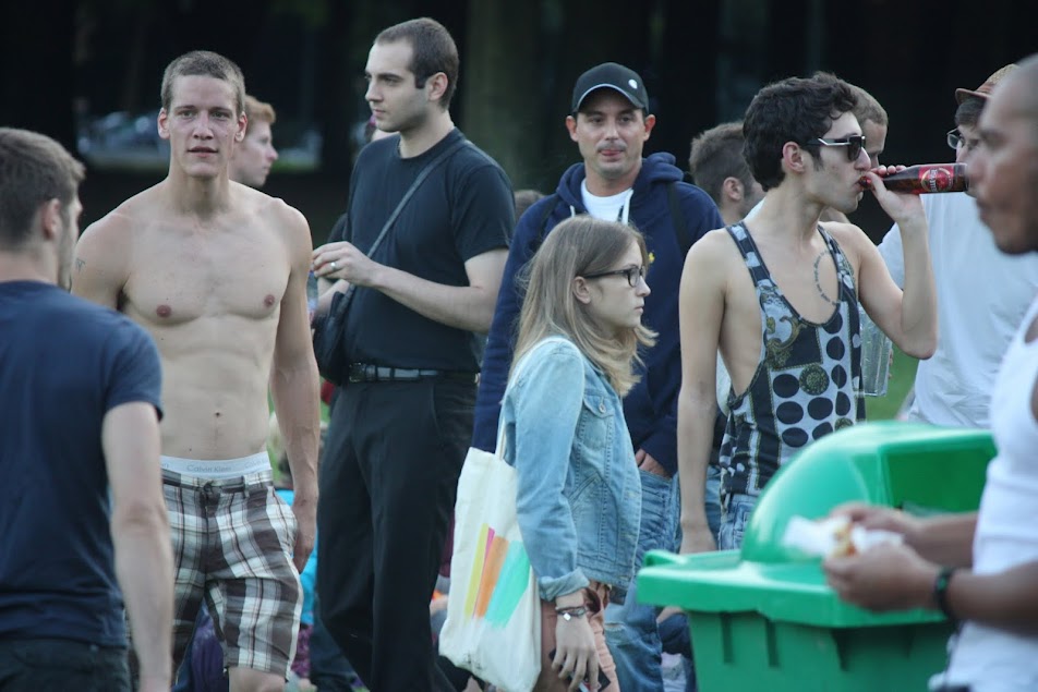 Les garçons aussi pouvaient diversifier leur look lors de ce piknik elektronik du 22 juillet, dans le Bois de la Cambre (Bruxelles). Voir ici le look des filles.