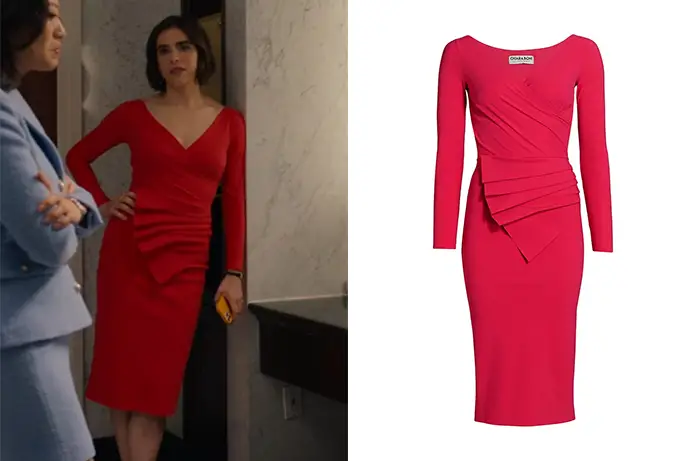 Rachel (Alexandra Turshen) porte cette très élégante robe rouge dans Plan de carrière 1×01.