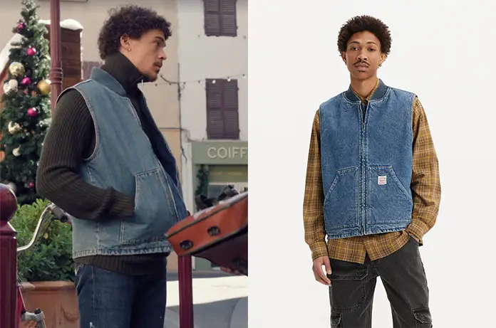 Baptiste (Bryan Trésor) porte cette veste sans manches en denim bleu « Plus belle la vie encore plus belle » épisode 481. On la trouve ici