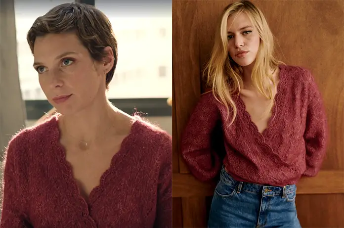 Léa (Marie Hennerez) porte ce joli pull cache-cœur rose foncé dans Plus belle la encore plus belle épisode 485.
