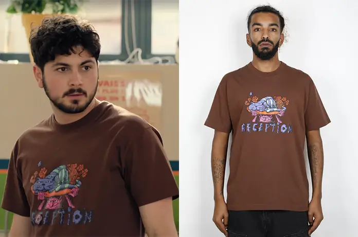 Steve (Florian Abboud) porte ce t-shirt marron dans Plus belle la vie encore plus belle épisode 372.
