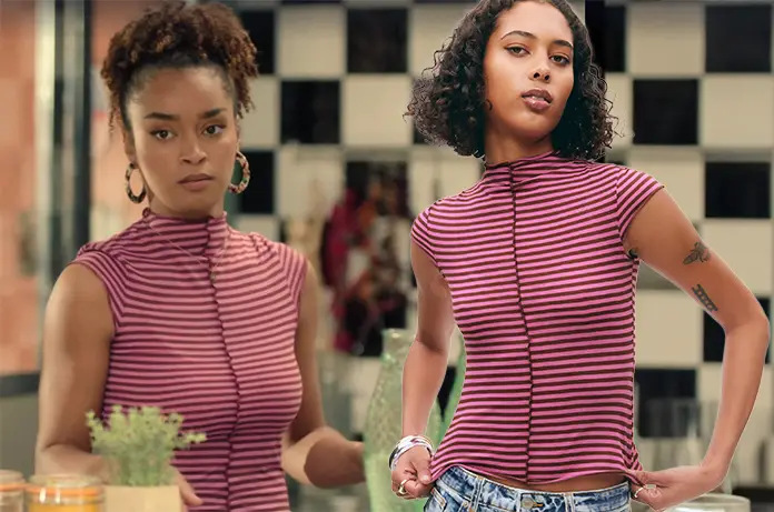 Aya (Johanna Boyer) porte ce top rayé dans Plus belle la vie encore plus belle épisode 372.