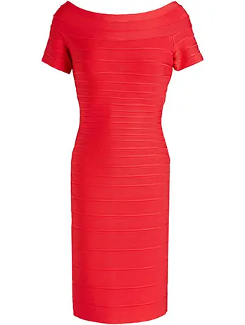 Sa jolie robe d’un rouge vifavec un motif « bandages » se trouve ici