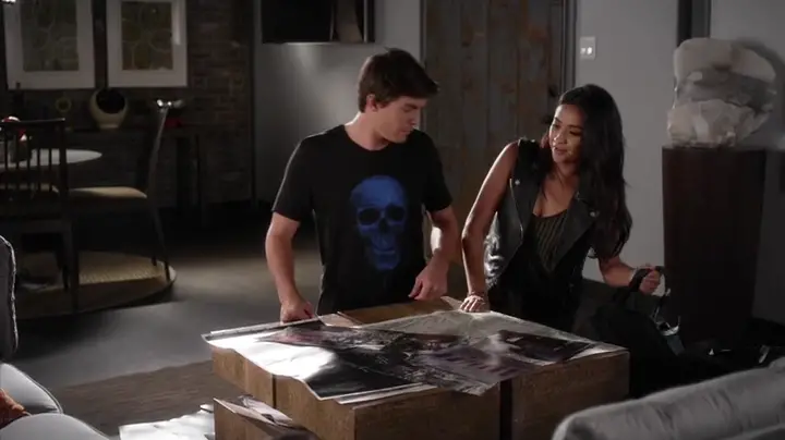 On a vu Caleb Rivers (Tyler Blackburn) avec cette tête de mort imprimée sur son t-shirt dans l’épisode 20 de la 6e saison de Pretty Weblittle liars.
