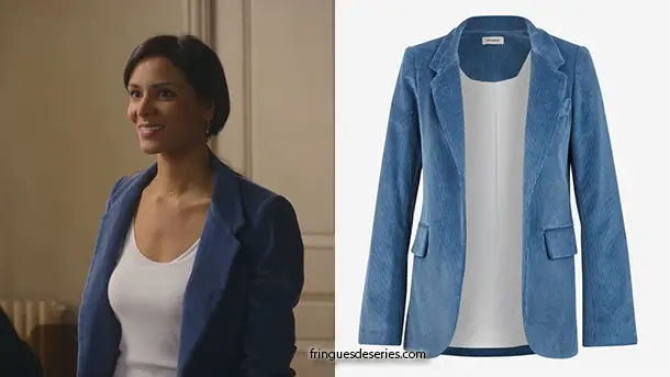 Dans Profilage saison10, Elisa Bergman (Tamara Marthe, alias la chanteuse Shy’m) devient la nouvelle co-équipière du commandant Rocher. Elle apparait dans le 2e épisode avec un blazer en velours bleu qu’on trouvait ici