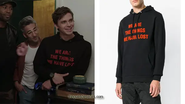 Le sweat à capuche d’Antoni Prowski dans Queer Eye (Netflix) s4e5 porte l’inscription « we are things we have lost ». Il est de la marque Dust.