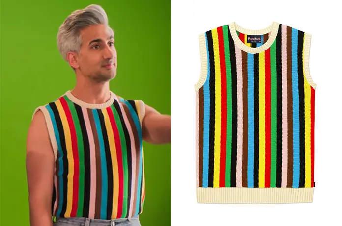 FashionFringues de sériesQueer Eye QUEER EYE : Tan’s sweater vest in episode 10 Par FDS - 11 janvier 2022 0 1039 FacebookTwitterPinterest Tan France porte ce débardeur aux rayures verticales colorés dans Quee Eye 6×10. On le trouve ici J’aime ça :J’aime chargement…