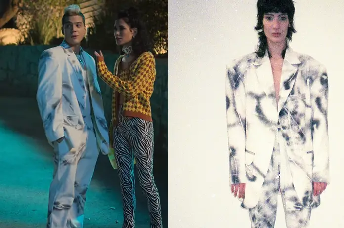 Dixon (Jeronimo Cantillo) porte un costume blanc oversize, peint à la main dans Rebede 1×06. Il s’agit d’une création du styliste mexicain Roberto Sánchez.