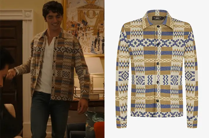 Red White & Royal Blue Red, White & Royal Blue : Alex’s southwestern jacquard shirt Par FDS - 13 août 2023 0 1921 FacebookTwitterPinterest Tout comme son père, Alex (Taylor Zakhar Perez ) porte des chemises avec des motifs qui rappellent les Indiens d’Amérique. On trouve celle-ci ici Chef costumier Keith Madden J’aime ça :J’aime chargement…