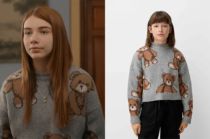 Sabrina (Eugenia Cableri) porte ce pull avec des nounours dans l’épisode 8 de Riv4lités (Riv4li) qui se déroule à Venise.