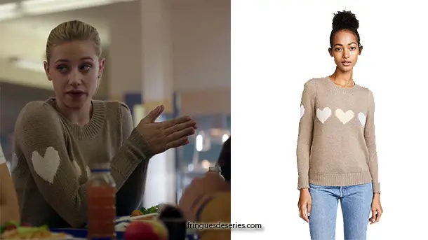 Betty (Lili Reinhart) porte ce joli pull à coeurs Wildfox dans l’épisode 16 de la saison 2 de Riverdale