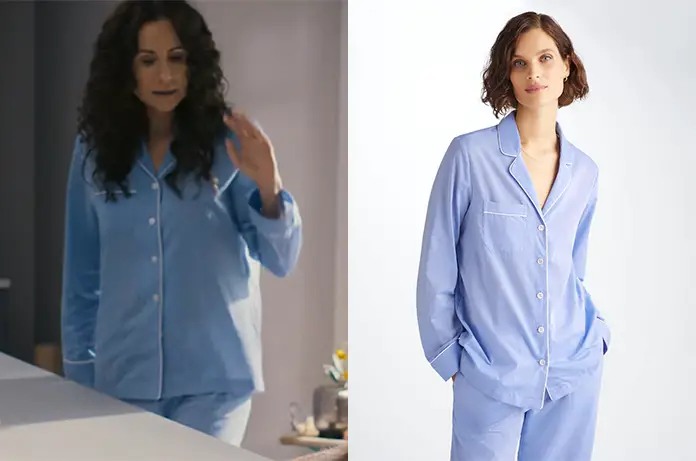 On la voit aussi avec un joli pyjama bleu clair, dispo ici.