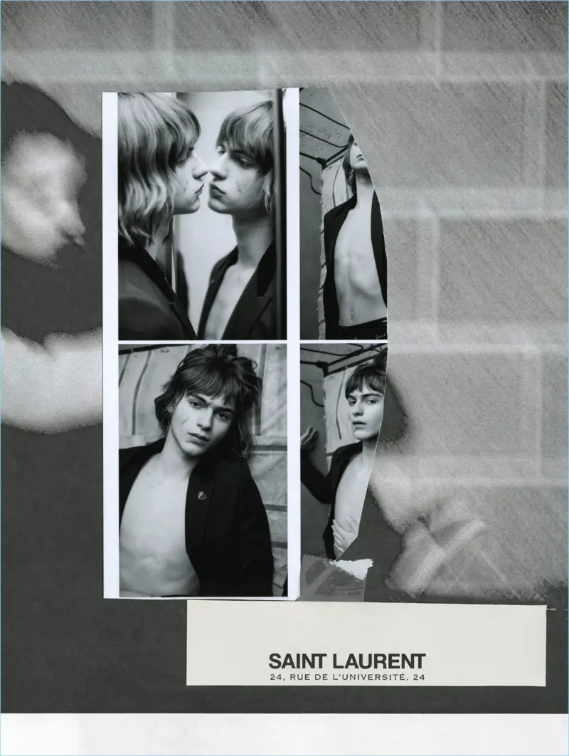 Des premiers visuels de la collection hommes automne- hiver 2017 Saint Laurent fleurissent sur le net. Le directeur artistique de la marque Anthony Vaccarello a fait confiance au célèbre Collier Schorr pour mettre en image la jeunesse qui représentera la marque. L’artiste américain présente une série de collages des modèles. Parmi tous ces jeunes gens, on reconnait Lukas Ionesco (22 ans hier) qu’on avait vu dans le bizarre The Smell of us, écrit par Scribe, talentueux poète nantais et dirigé par Larry Clark, mais aussi Louis Marzin (de l’agence Elite).