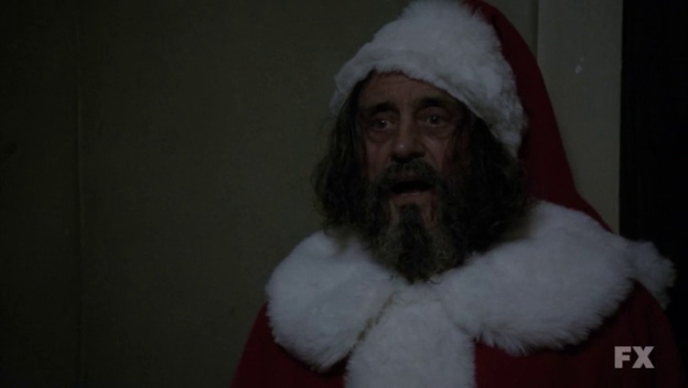 En cette fin d’année, les séries télé et le web nous offrent une collection de Santa Claus de tous genres. Tantôt effrayants, tantôt coquins, ils font partie du paysage obligé du mois de décembre. Nous en avons repéré quelques-uns…n’hésitez pas à nous en communiquer d’autres qui vous ont séduits cette année. Dans American Horror story, on est plutôt dans l’horreur, puisque Ian McShane interprète un Santa Claus psychopathe. Avant d’être interné à Briarcliff, il a tué 18 personnes dans 5 familles, après avoir volé le costume d’un Père Noël qu’il buta en rue.