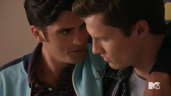 Jake Fitzgerald (Tom Maden) portait cette veste Fred Perry bleu ciel et bleu marine dans le 5e épisode de Scream (MTV).